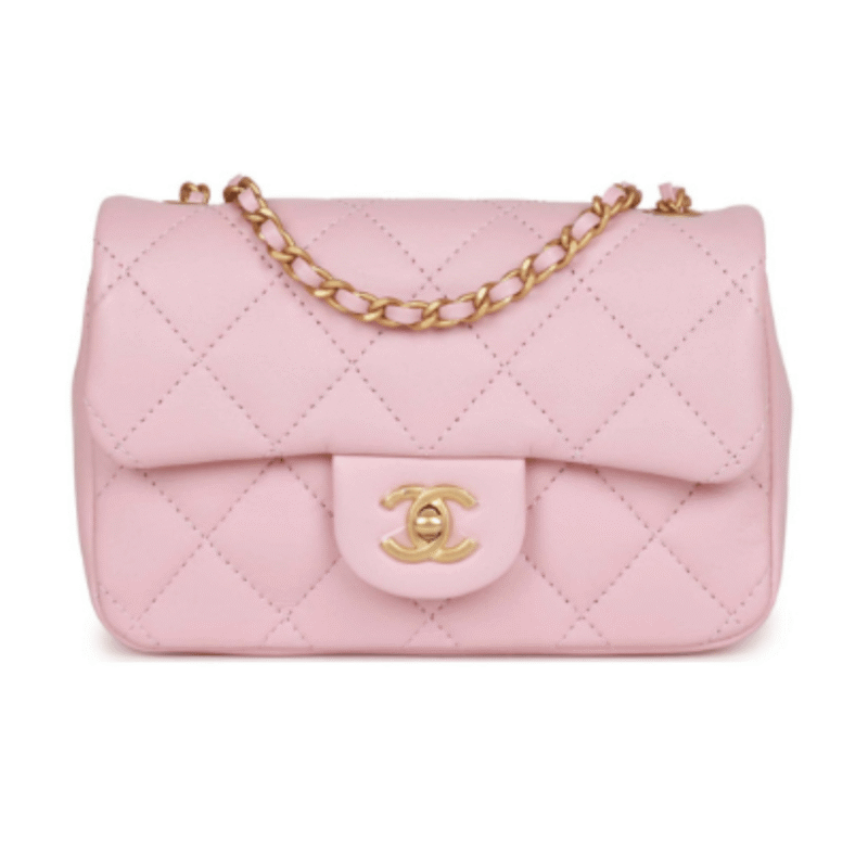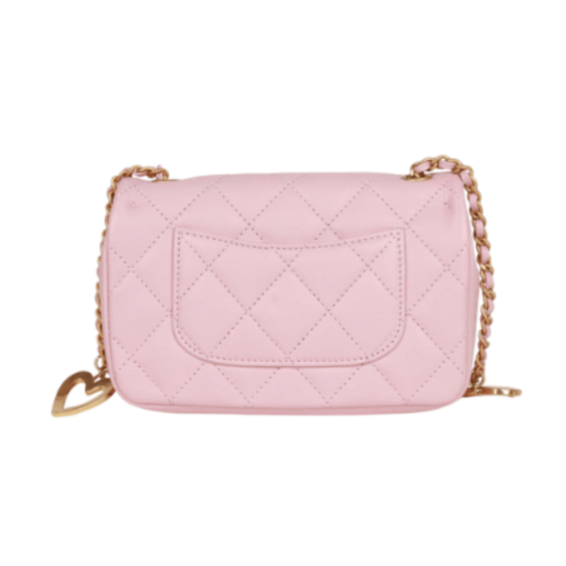 Chan.el | Mini Rectangular Flap Bag With Heart Chain In Pink Lambskin And Antique Gold-tone Hardware