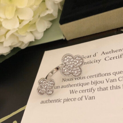 CLOVER BETWEEN THE FINGER RING – Silver alloy – 14k gold plated, Diamond Silver