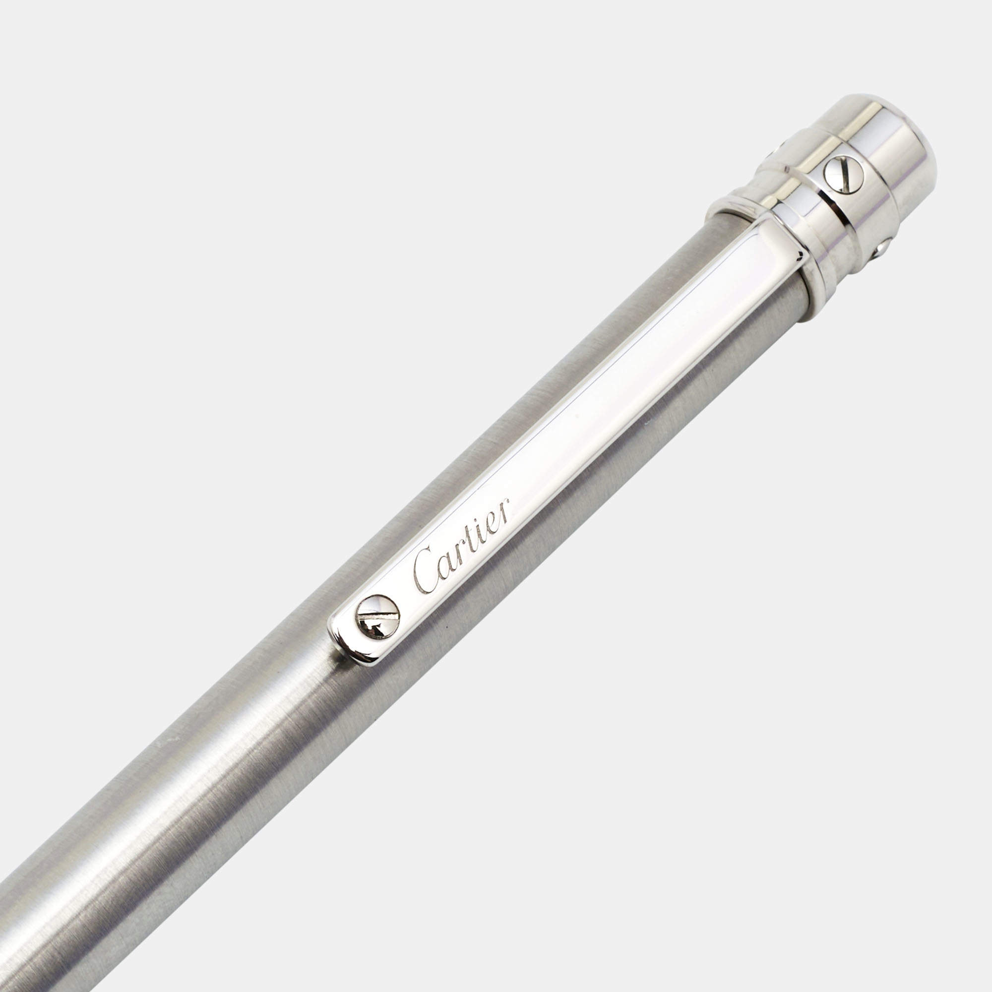 Cartier brings you this lovely ballpoint pen that has been made from silver-tone metal. It has been styled with the plain elegant design which is unique to the brand. The pen is easy to use with its push button on the top, Carry it wherever you go and flaunt your Cartier product gracefully.