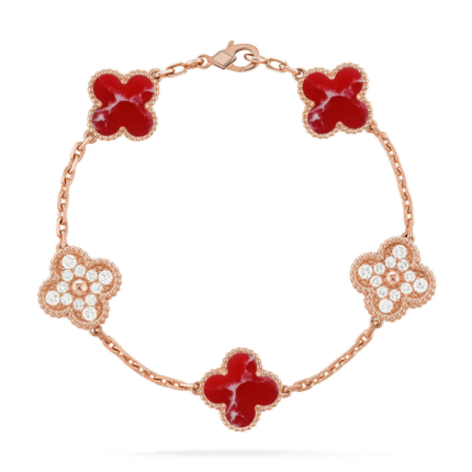 CLOVER 5 MOTIF RED PATTERN BRACELET COLLECTION – Rose, Diamond
