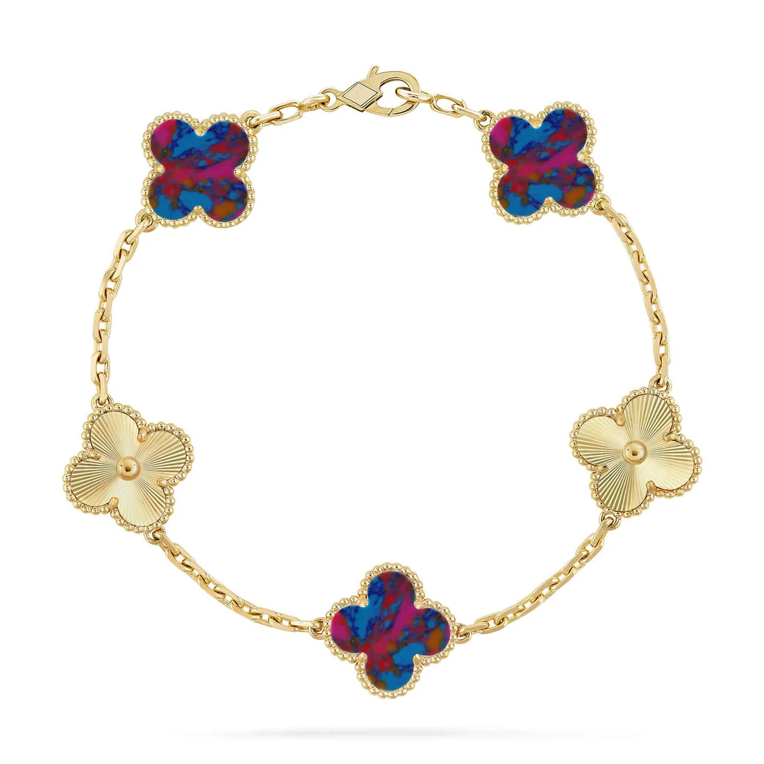 CLOVER 5 MOTIF COLOR GEMSTONES BRACELET COLLECTION – Gold-Laser, 19