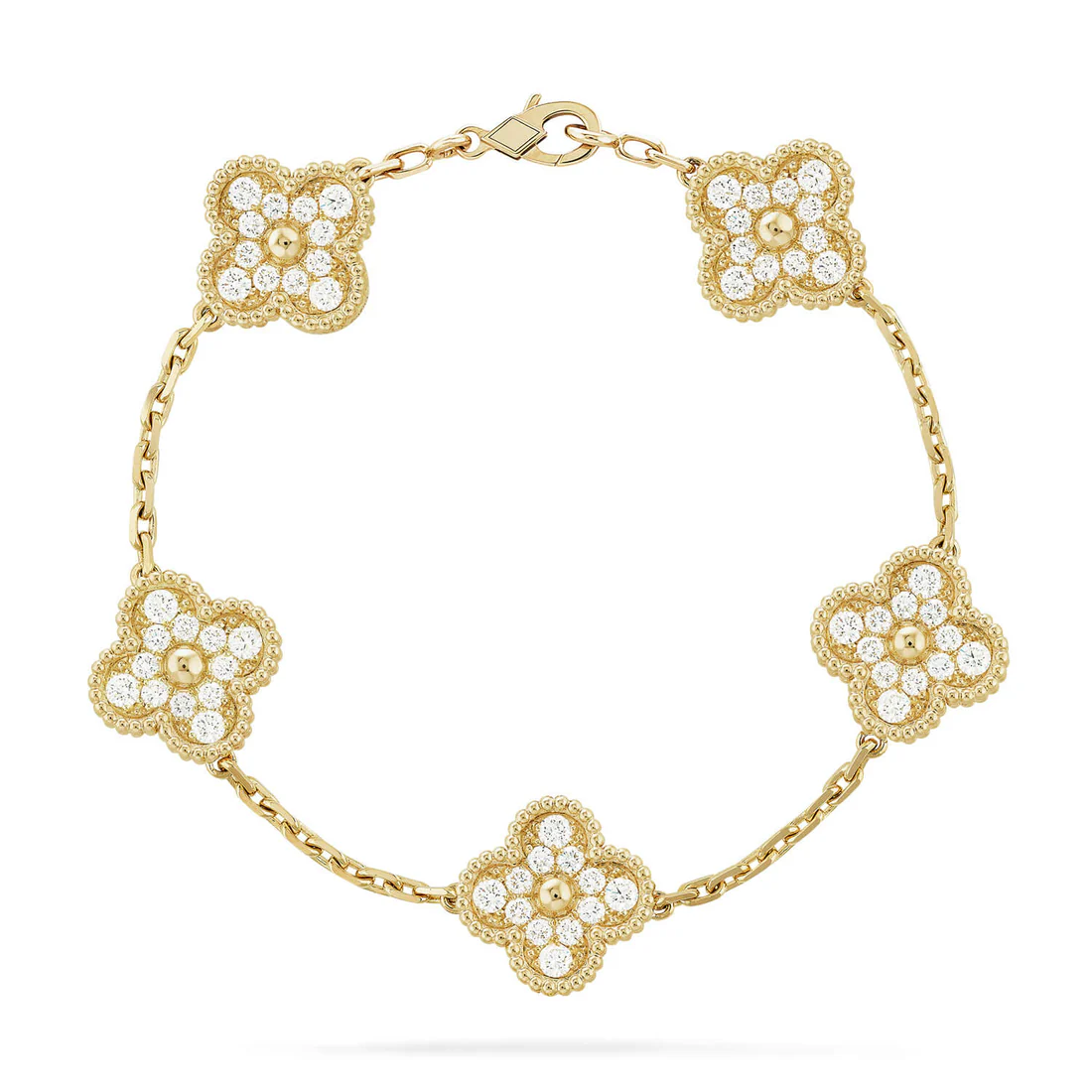 HomeProductCLOVER 5 MOTIF LASER BRACELET COLLECTION – Gold-Diamond, 19