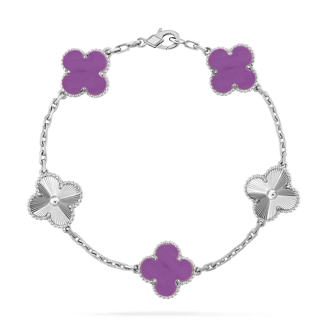 CLOVER 5 MOTIF LIGHT PURPLE BRACELET COLLECTION – Silver-Laser, 19