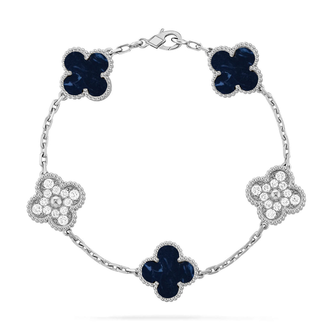 CLOVER 5 MOTIF LAPIS LAZULI BRACELET COLLECTION – Silver, Diamond