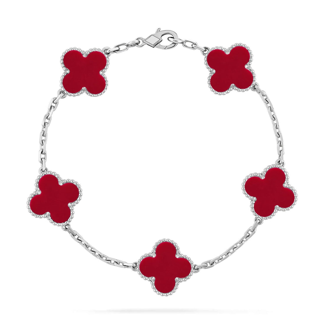 CLOVER 5 MOTIF RED CORNELIAN BRACELET COLLECTION – Silver