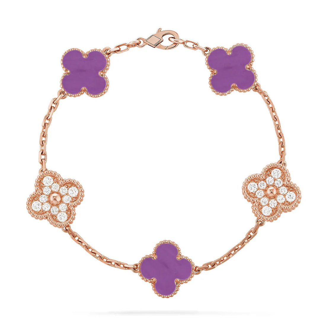 CLOVER 5 MOTIF VIOLET BRACELET COLLECTION - Rose-Diamond, 19 - Image 1