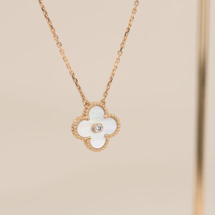 CLOVER 15MM DIAMOND SINGLE FLOWER NECKLACE – Rose Gold