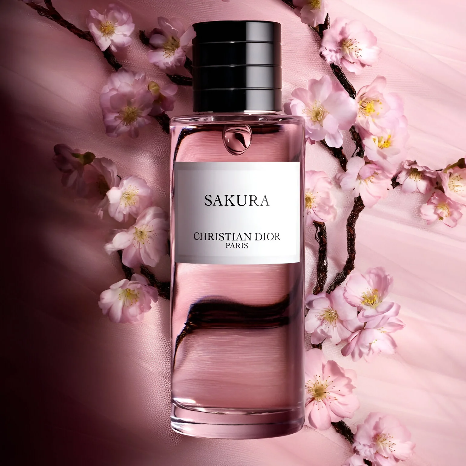 The Sakura eau de parfum depicts a poetic olfactory silhouette of barely bloomed cherry blossoms that caress the skin with the softness of a silk veil embroidered with a delicate almond note.