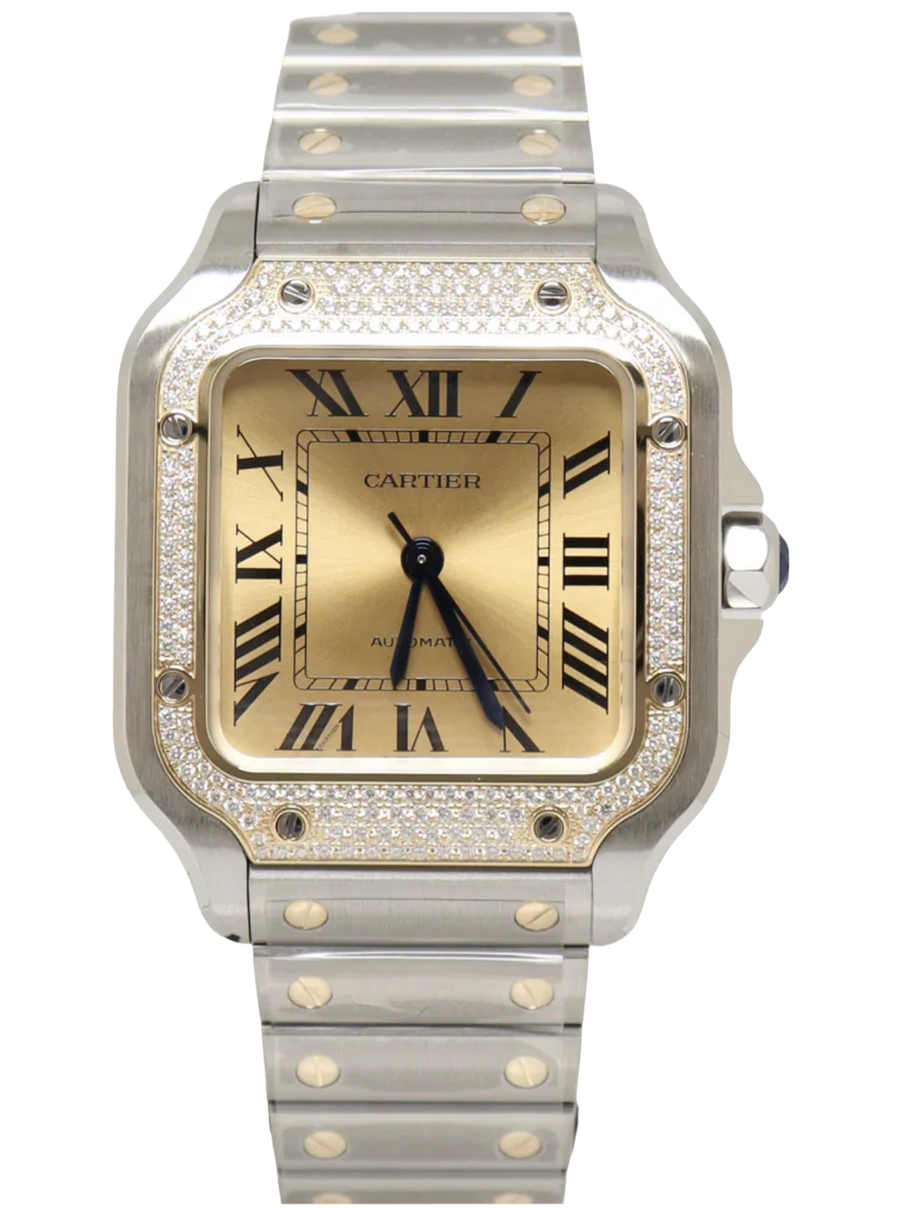 Santos de Car.tier Two-Tone Yellow Dial A modern luxury-sport design combining elegance with daily wearability.
